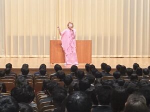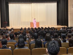 これから社会へ羽ばたくフレッシュな若者たちに、1時間30分にわたってトークと笑い、そして歌をプレゼントしました。会場は大盛況のうちに幕を閉じました!!